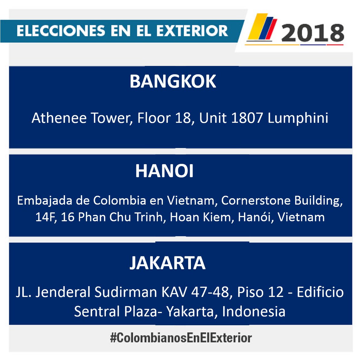 Abrimos en este momento mesas de votación en BANGKOK, HANOI y JAKARTA. #MadrúgueleAlVoto en nuestros Consulados de 8am a 4pm. Hoy 27 de mayo, último día de votacionespic.twitter.com/HsaxylZuaA