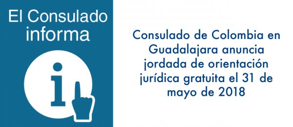 El Consulado de Colombia en Guadalajara anuncia jornada de orientación jurídica gratuita el 31 de mayo. http://guadalajara.consulado.gov.co/node/news/16843/consulado-colombia-guadalajara-anuncia-jornada-orientacion-juridica-gratuita-31-mayo … #ColombianosEnGuadalajarapic.twitter.com/m5N1zeVzQV