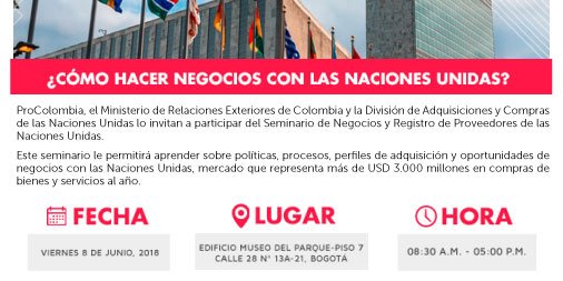 Este seminario le permitirá aprender sobre políticas, procesos, perfiles de adquisición y oportunidades de negocios con las Naciones Unidas. ¡Inscríbase! https://goo.gl/ppZUHe pic.twitter.com/t592uddHzu
