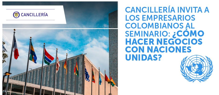 Cancillería invita a los empresarios colombianos al seminario: ¿Cómo hacer negocios con Naciones Unidas? http://www.cancilleria.gov.co/newsroom/news/cancilleria-invita-empresarios-colombianos-seminario-hacer-negocios-naciones-unidas …pic.twitter.com/ziBUDtyq2H