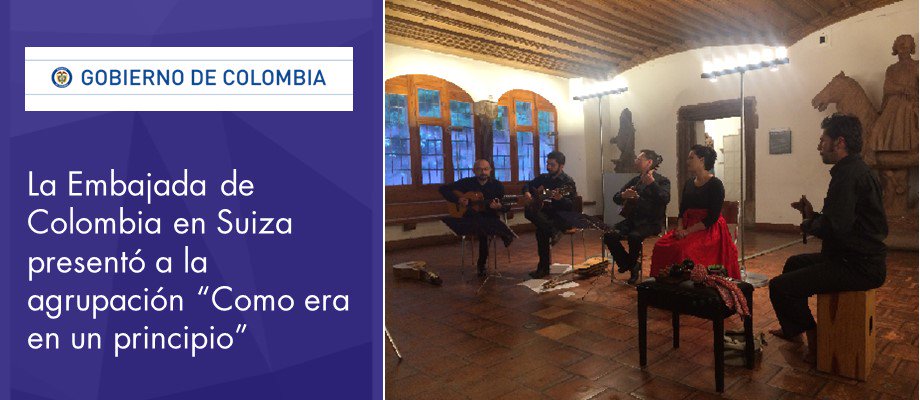 La Embajada de Colombia en Suiza presentó a la agrupación “Como era en un principio” http://suiza.embajada.gov.co/newsroom/news/2018-06-07/14891 …pic.twitter.com/T6mcCvfRFw