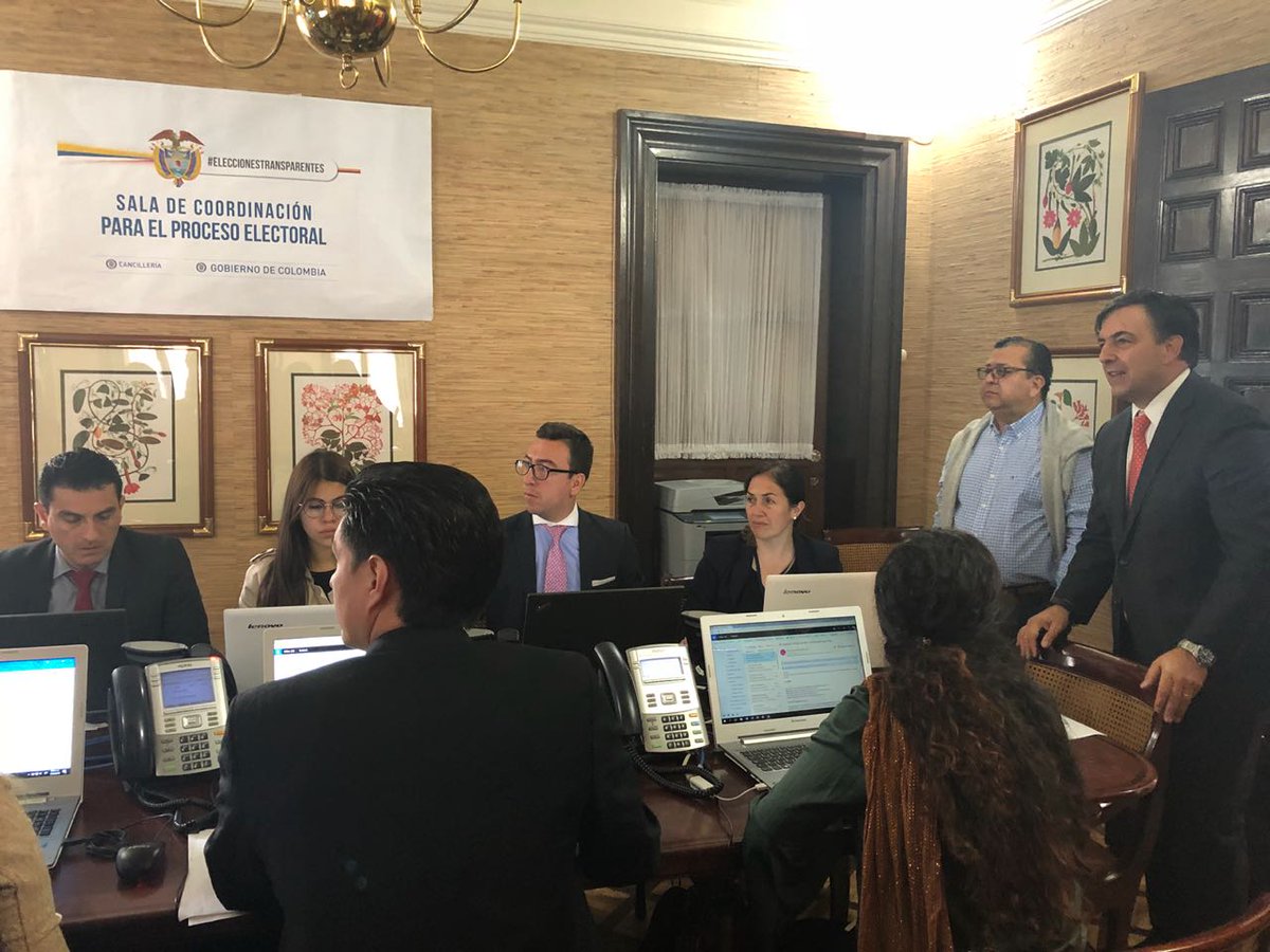Secretario General de @CancilleriaCol, Ancízar Silva, y Registrador Nacional del Estado Civil,@jcgalindovacha, monitorean Sala de Coordinación Electoral de Cancillería para ver cómo han transcurrido estos siete días de votaciones en el exterior. #EleccionesColombiapic.twitter.com/sPX6UrYxFl