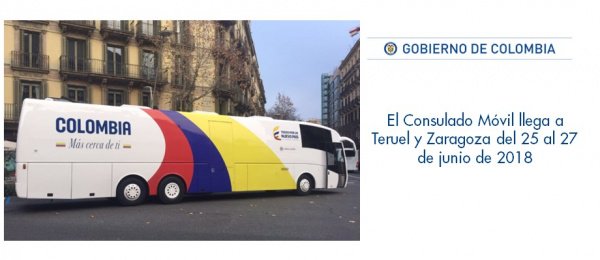 El Consulado Móvil llega a Teruel y Zaragoza del 25 al 27 de junio de 2018. http://barcelona.consulado.gov.co/newsroom/news/2018-05-24/17031 … #ColombianosEnEspañapic.twitter.com/Pgf8o5TBr5