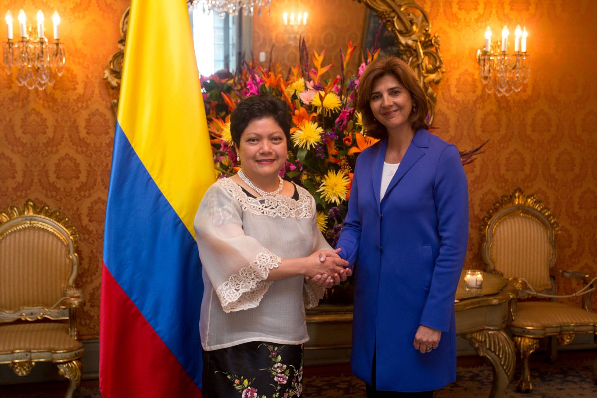 Embajadora de la República de Filipinas, concurrente para Colombia, presentó las copias de cartas credenciales a la Ministra María Ángela Holguín http://www.cancilleria.gov.co/newsroom/news/embajadora-republica-filipinas-concurrente-colombia-presento-copias-cartas …pic.twitter.com/0JxZtvA107