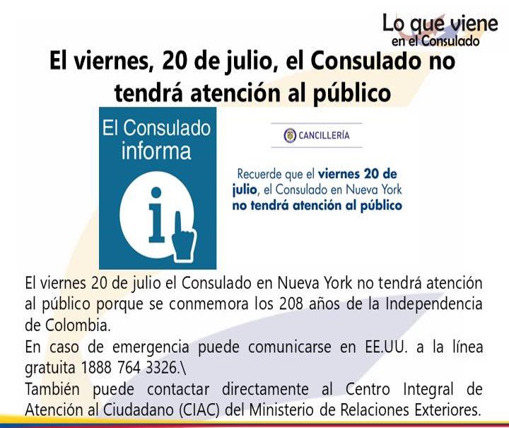 No se pierda la programación de los eventos que tiene el Consulado de Colombia en Nueva York para los compatriotas.pic.twitter.com/uLz0rATIep