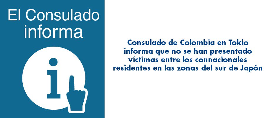 Consulado de Colombia en Tokio informa que no se han presentado víctimas entre los connacionales residentes en las zonas del sur de Japón http://tokio.consulado.gov.co/newsroom/news/2018-07-12/17696 …pic.twitter.com/3U9BEwUBhM