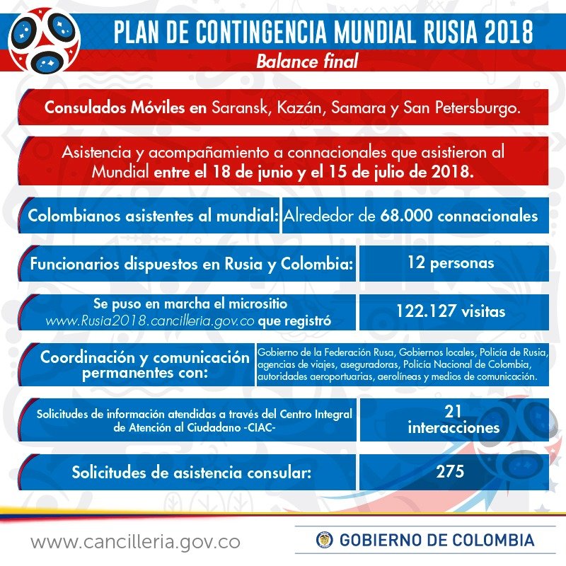 Ciudadano, lo invitamos a consultar las cifras de atención que @CancilleriaCol brindó en la Copa Mundial de fútbol #Rusia2018 #ColombianosEnRusiapic.twitter.com/FatD33qAeV