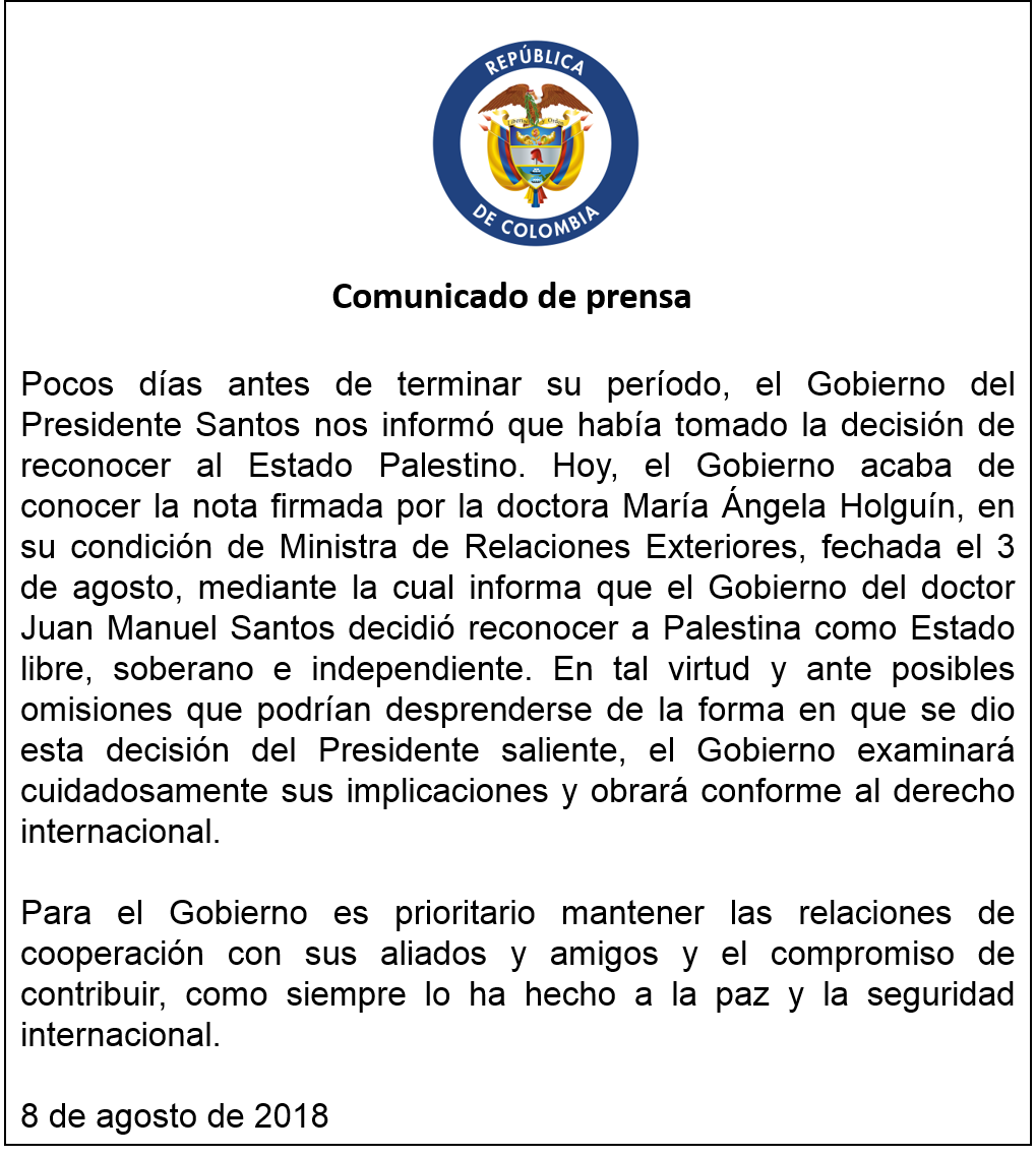 Yo creo que esa decisión no tiene reversa. En la @WRadioColombia presentaron un audio del candidato Duque del 21 de Mayo donde acepta y aprueba reconocer el Estado Palestino. Yo creo que se mantendrán en la decisión y le echarán la "culpa" a JMS. Pero dejarán así. Eso creo