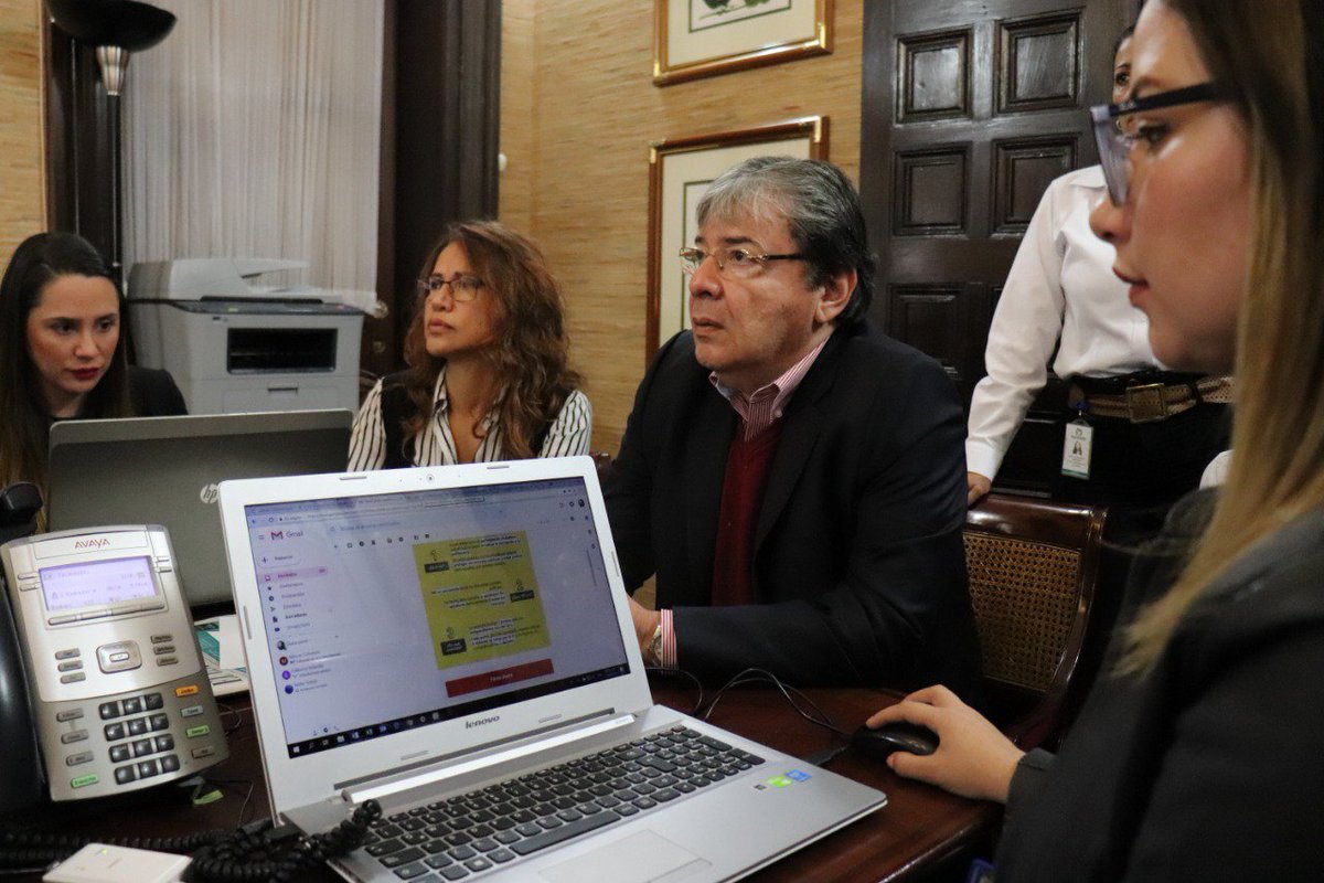 Desde la Sala de Coordinación para el Proceso Electoral, Canciller Carlos Holmes Trujillo hace seguimiento de último día de votación de Consulta Anticorrupción en el exteriorpic.twitter.com/mEBmYMK41L