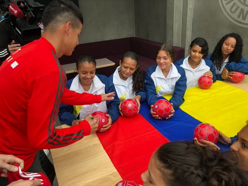 .@jamesdrodriguez saludó a las participantes del intercambio de #DiplomaciaDeportiva y las motivó a seguir por la vía del deporte. #Alemania @FCBayernESpic.twitter.com/x8TpTGYbuz