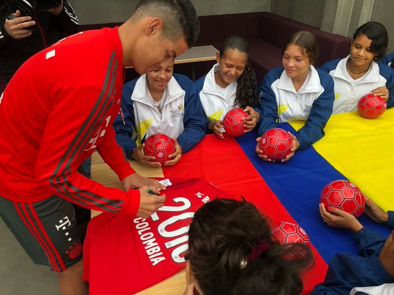 Futbolistas de #LaJaguaDeIbirico se encuentran con @jamesdrodriguez en la sede del @FCBayernES durante intercambio de #DiplomaciaDeportiva en #Alemaniapic.twitter.com/t91xiUrokV