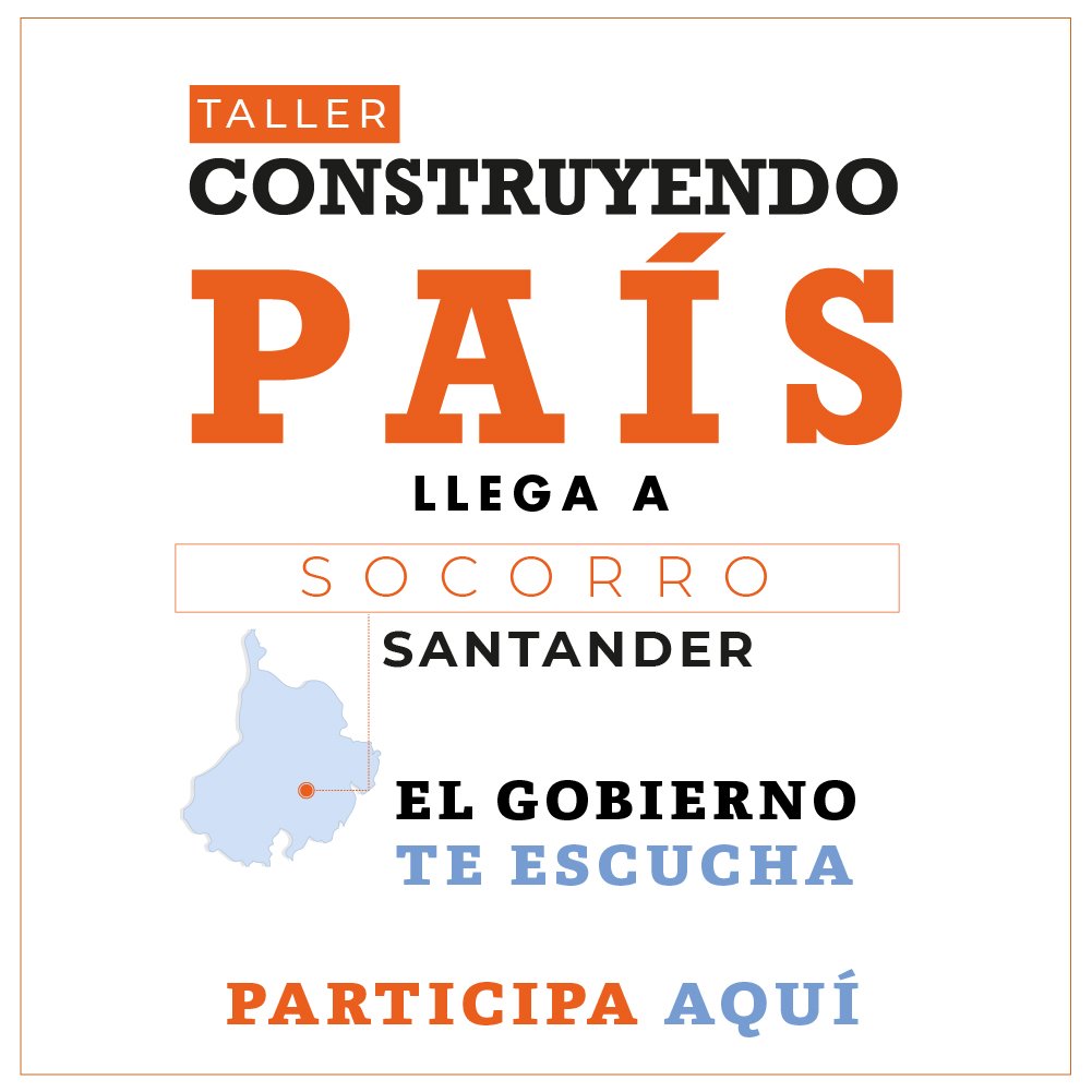 ¡El próximo Taller #ConstruyendoPaís será en Socorro, Santander! Desde ya puedes contarnos las preocupaciones que tienes sobre tu región