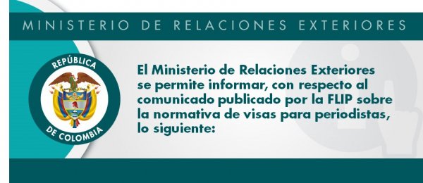 El Ministerio de Relaciones Exteriores se permite informar, con respecto al comunicado publicado por la FLIP sobre la normativa de visas para periodistas, lo siguiente: http://www.cancilleria.gov.co/newsroom/publiques/ministerio-relaciones-exteriores-permite-informar-respecto-comunicado-publicado …pic.twitter.com/bm971yinOk