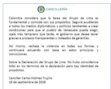 Sería bueno saber qué términos de la Declaración del grupo de Lima no gustaron en
