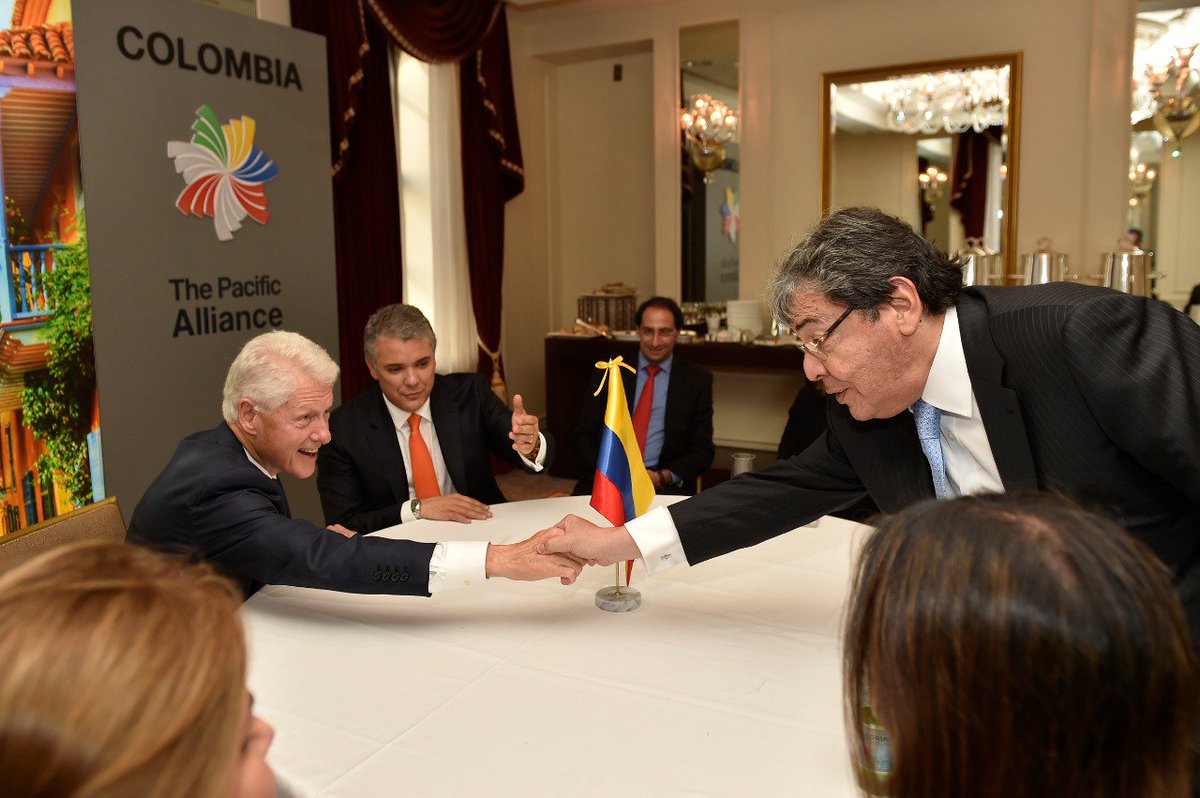 Canciller Carlos Holmes Trujillo saludó al expresidente de Estados Unidos, Bill Clintonpic.twitter.com/AoYJq1gXWp