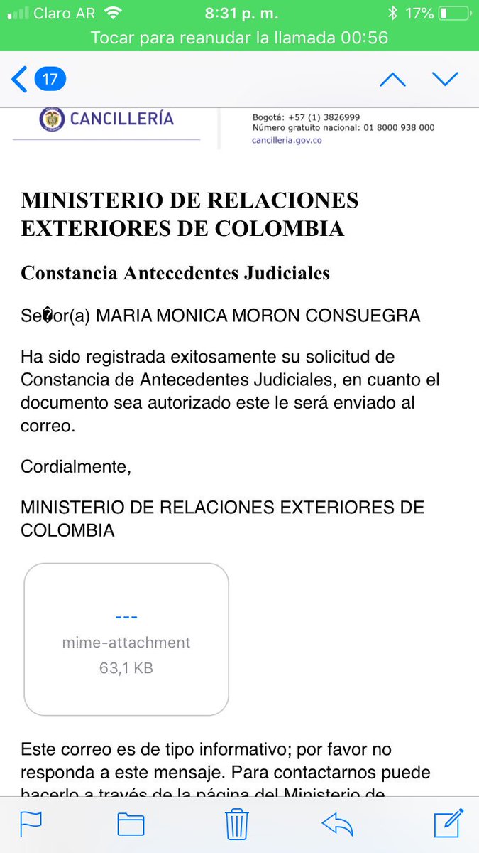 @CancilleriaCol hace 6 días hice una solicitud de antecedentes para el consulado Argentino , en el día de hoy no me ha llegado notificación . Estoy por fuera del país , podrían colaborarme y guiarme cómo proceder.pic.twitter.com/wI0uUwVpnP
