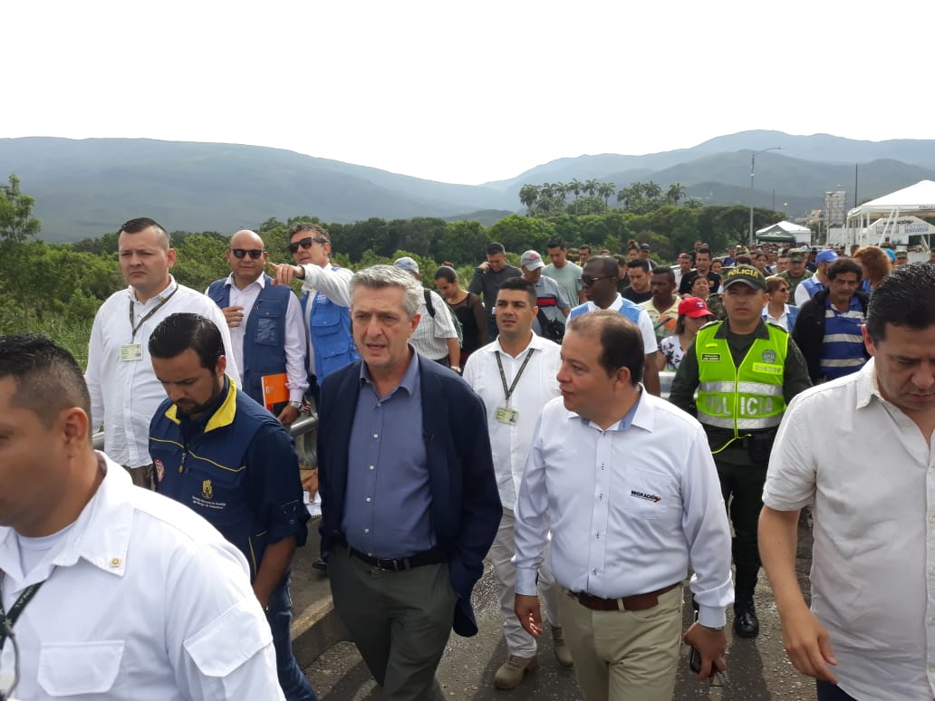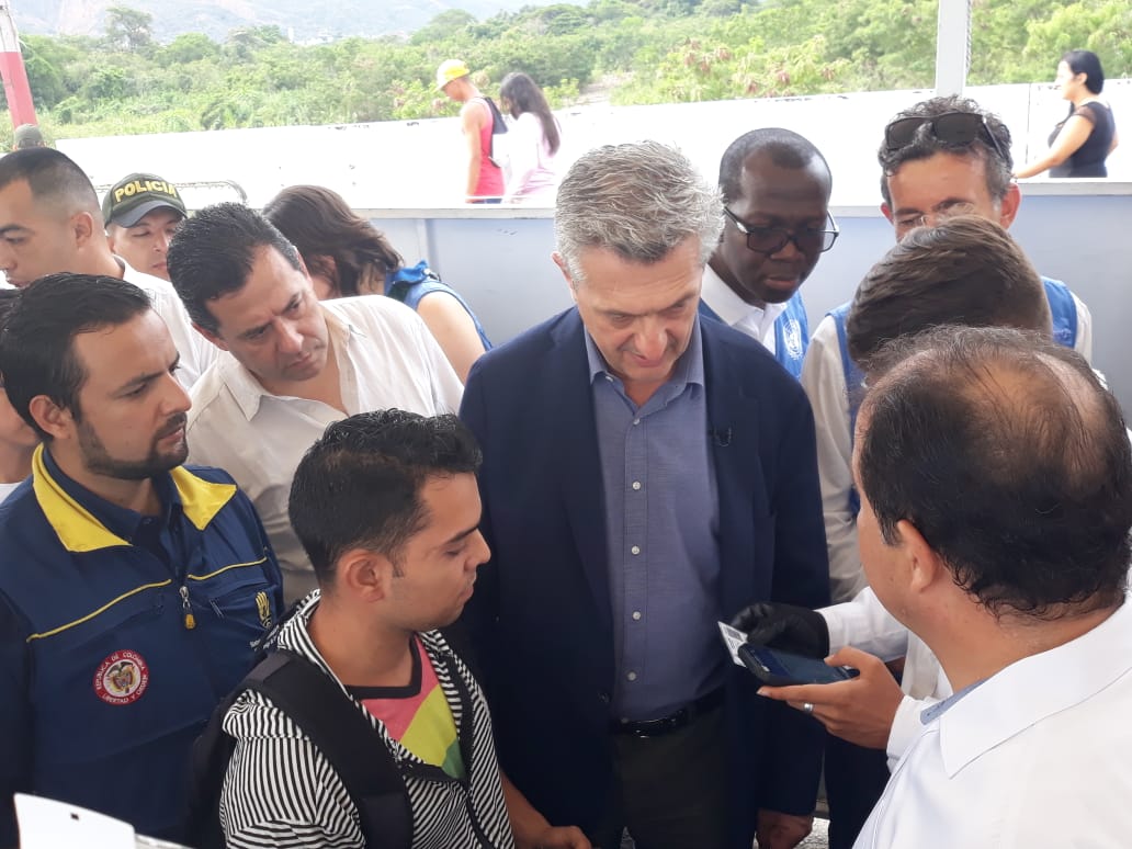 Para conocer de primera mano la situación de los venezolanos que llegan a COL a través del puente Simón Bolívar, @RefugeesChief, hizo un recorrido por la infraestructura de servicios de salud y de orientación legal que se encuentra dispuesta en las inmediaciones del puentepic.twitter.com/zIZRSluzA4