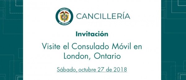 El Consulado de Colombia en Toronto informa a los colombianos residentes en Canadá que realizará una jornada del Consulado Móvil en la ciudad de London, en Ontario, el sábado 27 de octubre de 2018, de 8 a.m. a 4 p.m. en 338 Burwell St, London, ON, N6B 2V9. http://toronto.consulado.gov.co/node/news/18435/visite-consulado-movil-london-ontario …pic.twitter.com/PWmK2Jomml