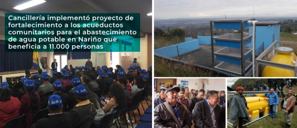 Cancillería implementó proyecto de fortalecimiento a los acueductos comunitarios para el abastecimiento de agua potable en Nariño que beneficia a 11.000 personas http://www.cancilleria.gov.co/newsroom/news/cancilleria-implemento-proyecto-fortalecimiento-acueductos-comunitarios-abastecimiento …pic.twitter.com/F2GhiCHfjf