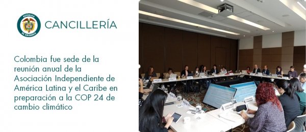 Colombia fue sede de la reunión anual de la Asociación Independiente de América Latina y el Caribe en preparación a la COP 24 de cambio climático http://www.cancilleria.gov.co/newsroom/news/colombia-fue-sede-reunion-anual-asociacion-independiente-america-latina-caribe …pic.twitter.com/19vDbGGvII