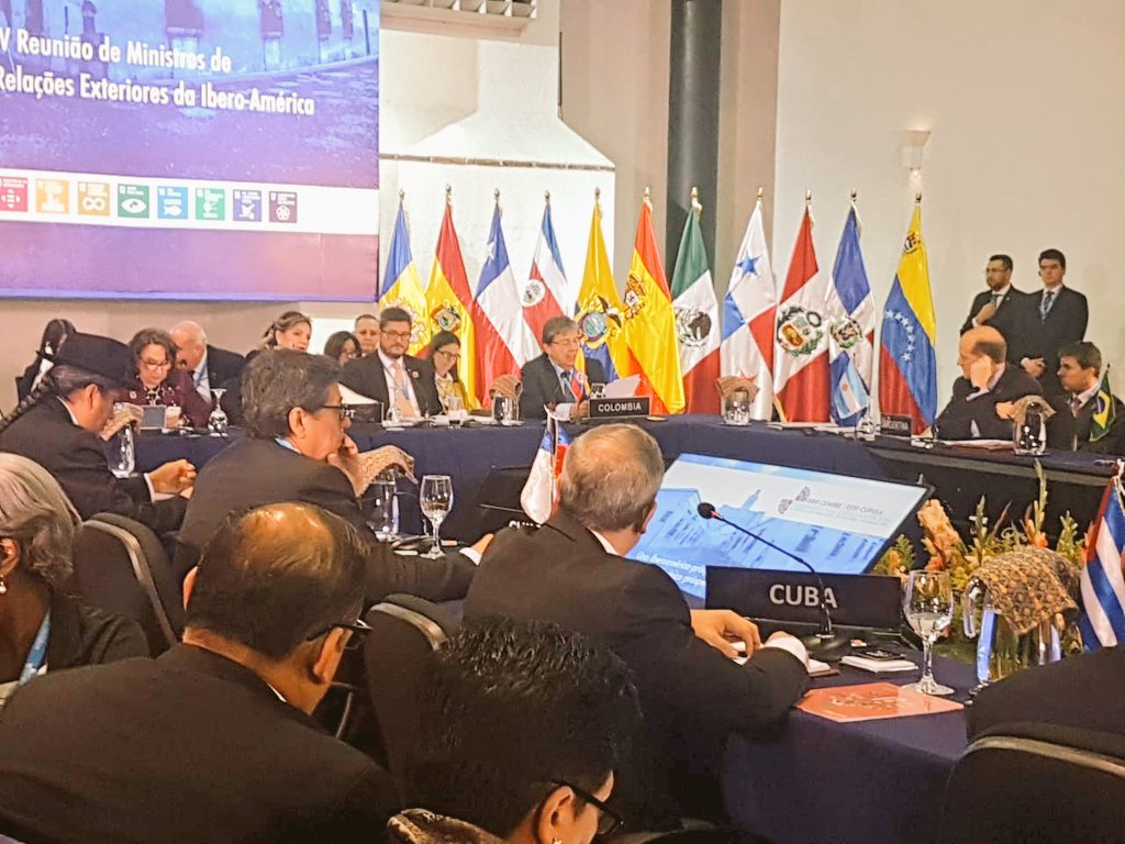 Canciller @CarlosHolmesTru habló, durante su intervención en la IV Reunión de Ministros de Relaciones Exteriores de la Cumbre Iberoamericana, sobre los tres pilares del Gobierno colombiano: legalidad, emprendimiento y equidad #SomosIberoaméricapic.twitter.com/IXHGdg0vwx