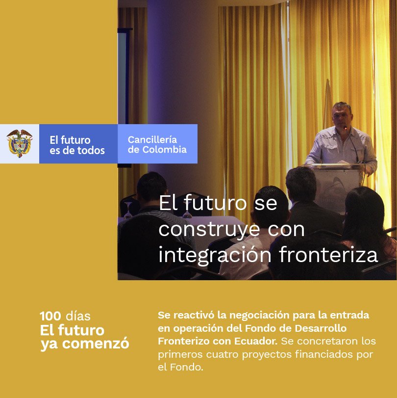 Durante los #Primeros100días de este gobierno, se reactivó la negociación para la entrada en operación del Fondo de Desarrollo Fronterizo con Ecuador y se concretaron los primeros cuatro proyectos financiados por el Fondo #ElFuturoYaComenzópic.twitter.com/6TodZdffVX