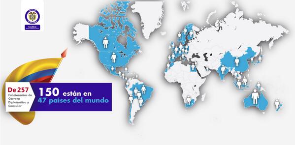 De los 257 funcionarios de Carrera Diplomática y Consular de @CancilleriaCol, 150 están en 47 países del mundopic.twitter.com/7Hg2kTl8Z6