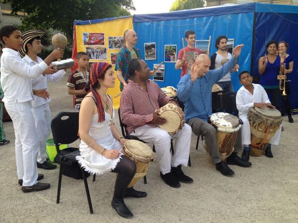 A las afueras de París,músicos de Cesar tocan en ensamble con locales que aprenden a tocar cumbia #DiplomaciaCulturalpic.twitter.com/UXZX2o0Yco