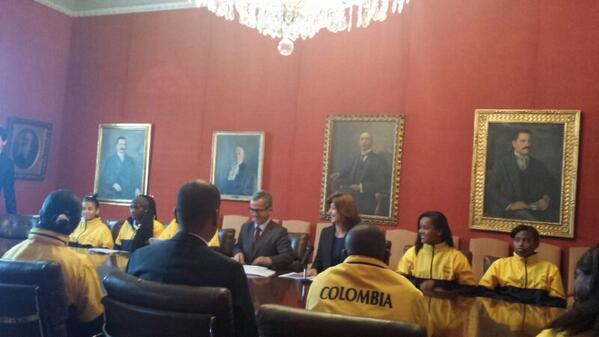 Canciller recibe a niñas de El Bagre y Santander de Quilichao que van a Estados Unidos gracias a #DiplomaciaDeportivapic.twitter.com/P689UAde9g