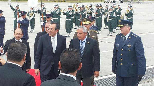 Viceministro Morales recibe en estos momentos al Presidente de Guatemala, Otto Pérez, a su llegada a Colombiapic.twitter.com/2bFh0SPgam