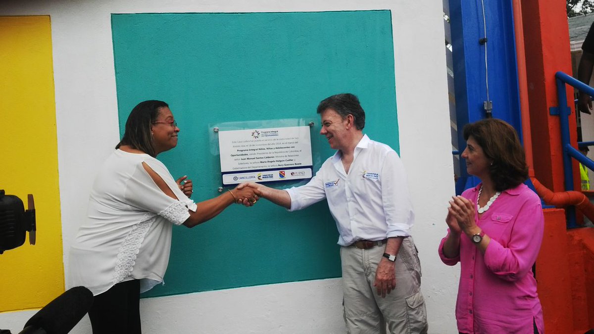 Canciller Holguín, Presidente Santos y Gobernadora de San Andrés entregan oficialmente #CasaLúdica a la comunidadpic.twitter.com/hbvtxRJe78