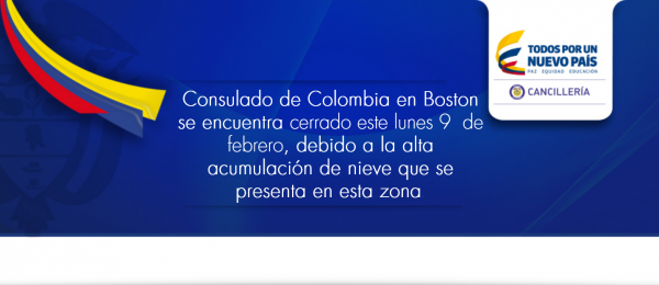 Por condiciones climáticas, este lunes el Consulado de Colombia en Boston estará cerradopic.twitter.com/TzqAuLGqVN