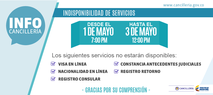 Entre el 1 y el 3 de mayo indisponibilidad de servicios:pic.twitter.com/BPK4Ho9flo