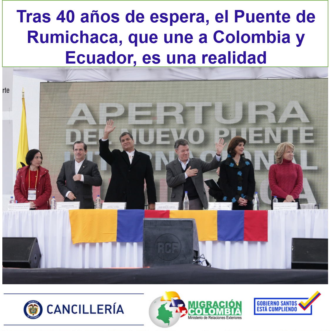 Gracias a @CancilleriaCol y Gobierno de ECU, Puente internacional de Rumichaca hoy es una realidad #EstamosCumpliendopic.twitter.com/brbjY1od95