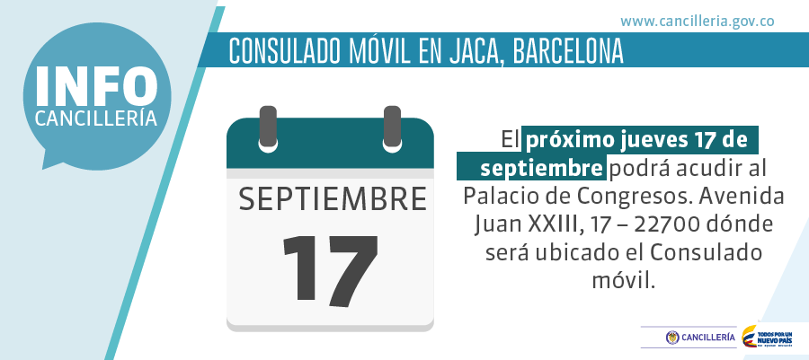 Colombianos en Barcelona: habrá Consulado móvil en Jaca, más información aquí ► http://bit.ly/1Ft9INV pic.twitter.com/vgzvRBCFas