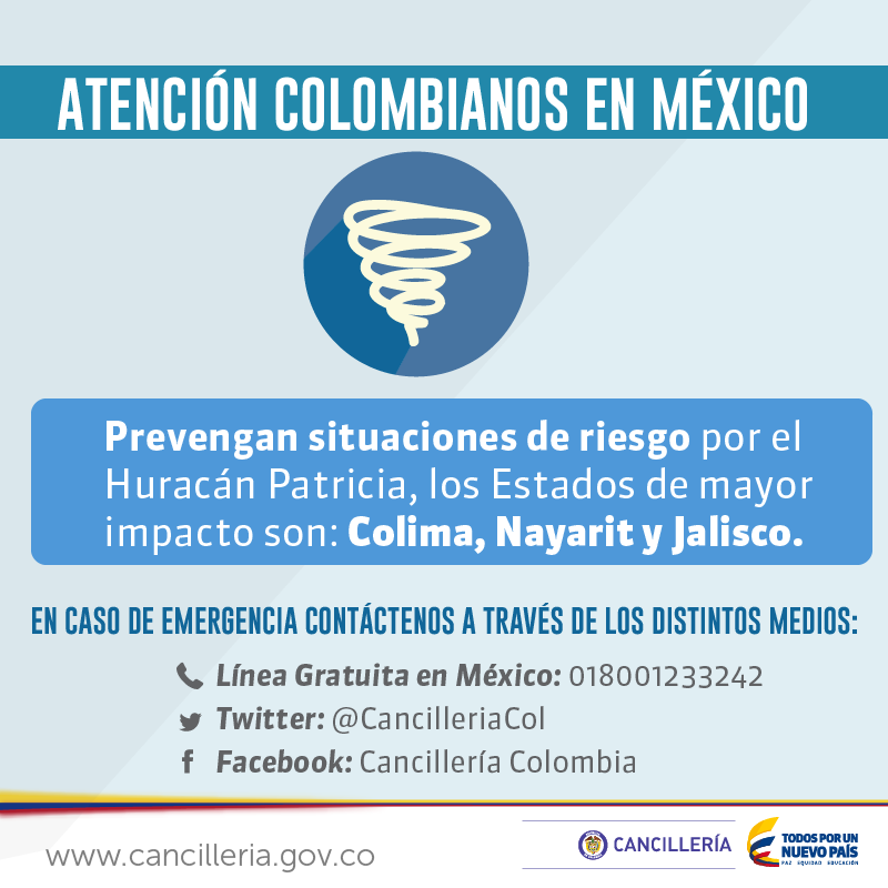 #ColombianosenMexico Manténgase al resguardo total en zonas de alerta roja. Contáctenos.pic.twitter.com/RS0ulD0dtl