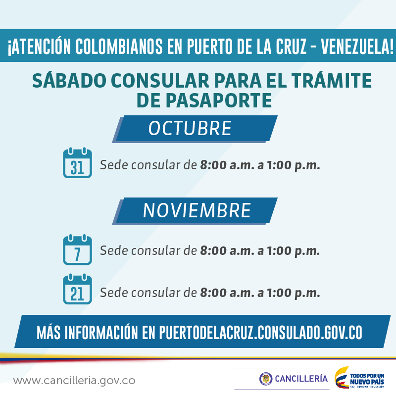 ¡Nuevas jornadas de expedición de pasaportes para Colombianos en Puerto la Cruz!pic.twitter.com/SH5zGZnksn