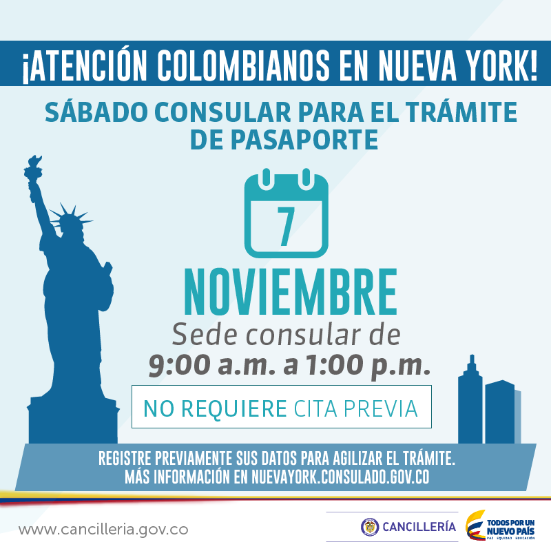 ¡Sábado consular para tramitar #PasaporteColombiano en Nueva York!pic.twitter.com/pA5vtvzMCQ