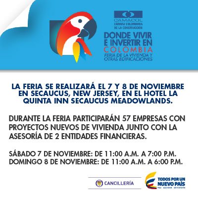 New Jersey: 7 y 8 de noviembre, feria dónde vivir e invertir en Colombiapic.twitter.com/9XCq2t5LbX