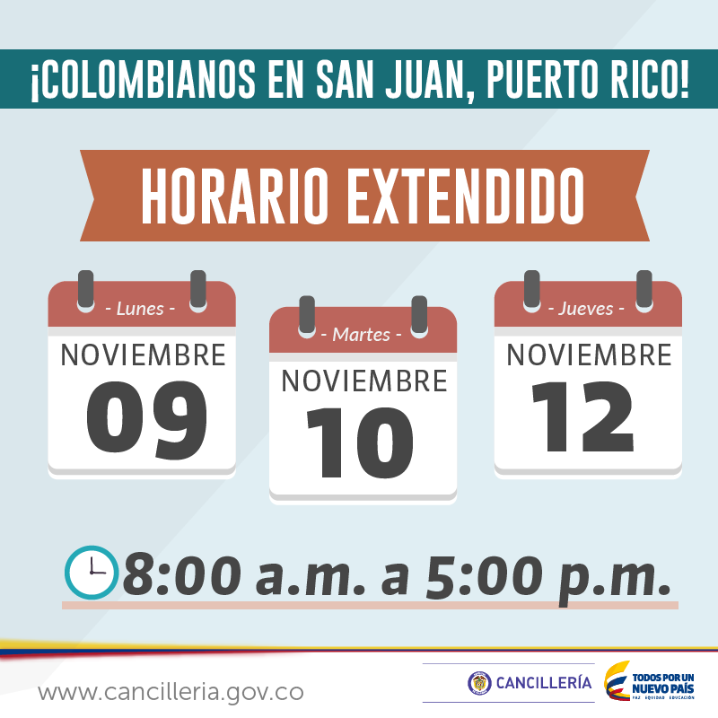 Colombianos en Puerto Rico: Horario extendido para expedición y entrega de pasaportes, sin cita previapic.twitter.com/KTDYn4XiMP