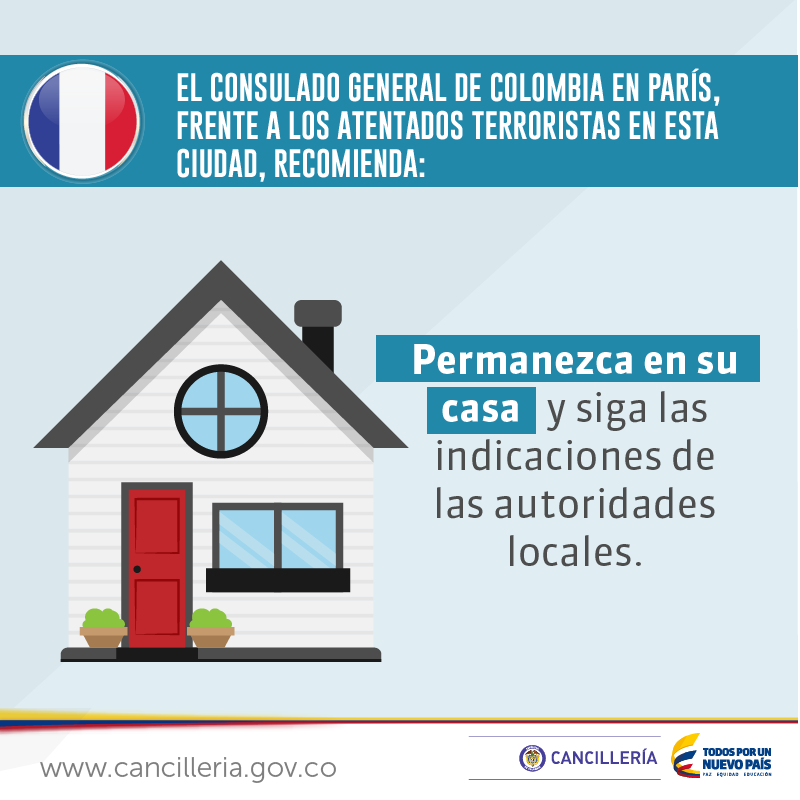 #ColombianosEnParís Sigan las instrucciones de las autoridades localespic.twitter.com/BwXF56Fll8