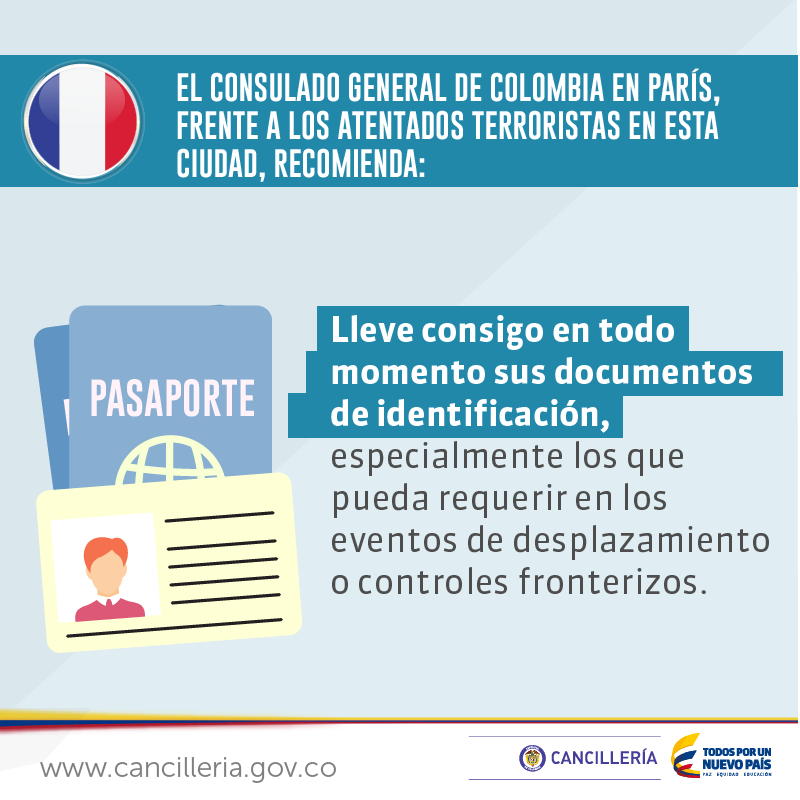 #ColombianosenParís lleven consigo en todo momento sus documentos de identificaciónpic.twitter.com/ymcXtdvsid