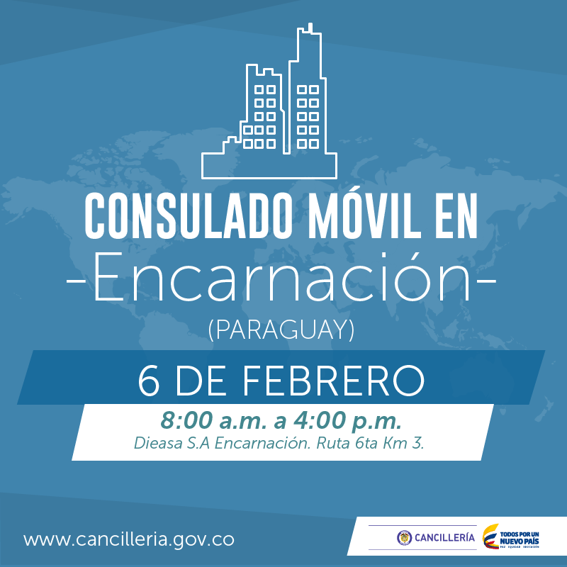 Citas en casuncion@cancilleria.gov.co o al número telefónico: (595 21)214775 http://bit.ly/1nN4qdP pic.twitter.com/e5UBussw8d