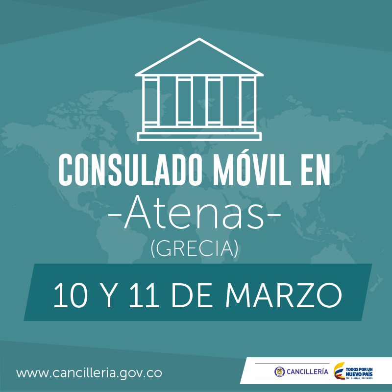 #ColombianosEnAtenas Consulado de Roma estará con su unidad móvil este 10 y 11 de marzo http://bit.ly/CAtenas pic.twitter.com/Gxgi51ykhj