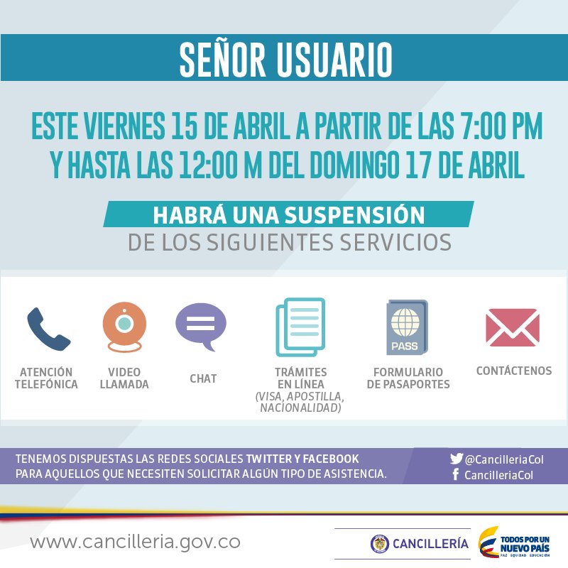 Señor usuario, nuestras redes sociales estarán dispuestas para atender sus solicitudes.pic.twitter.com/ntC3p5Vl2s