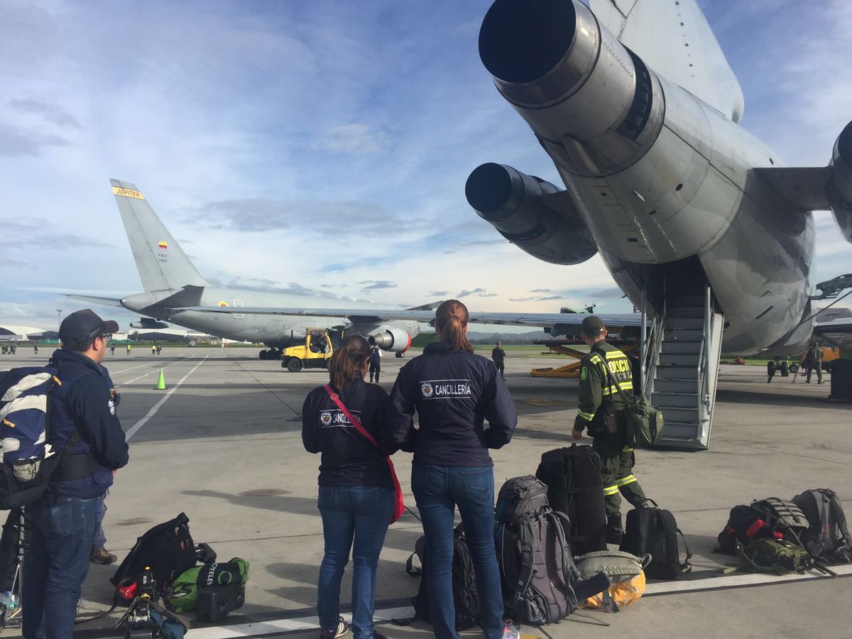 Estas son las ayudas que van en el avión de @FuerzaAereaCol donde @cancilleriacol y @UNGRD repatriarán a Colombianospic.twitter.com/hn0nzidTG2