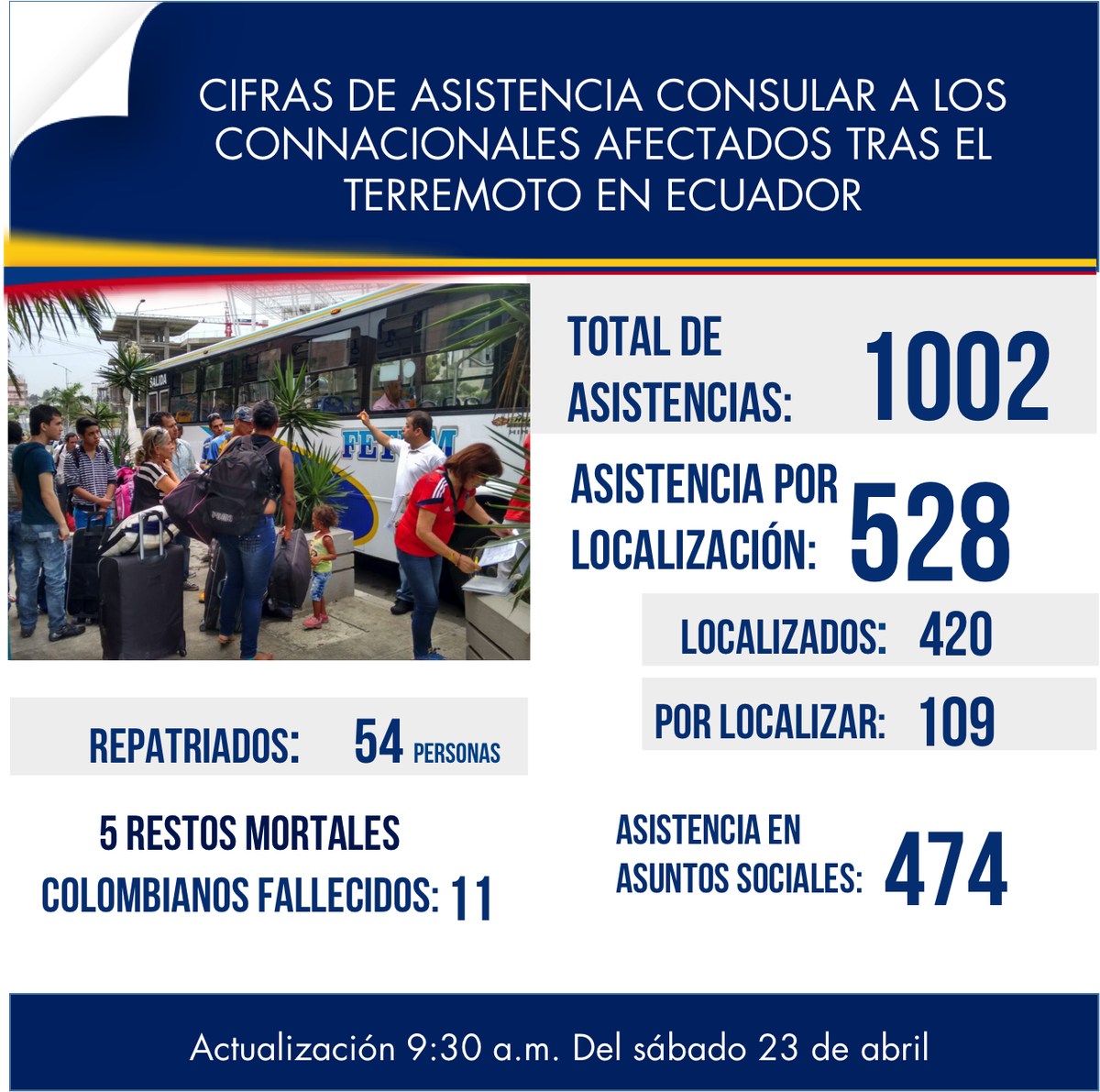 Actualización 9:30 a.m. #ColombianosEnEcuador:pic.twitter.com/EP23h9CeJP