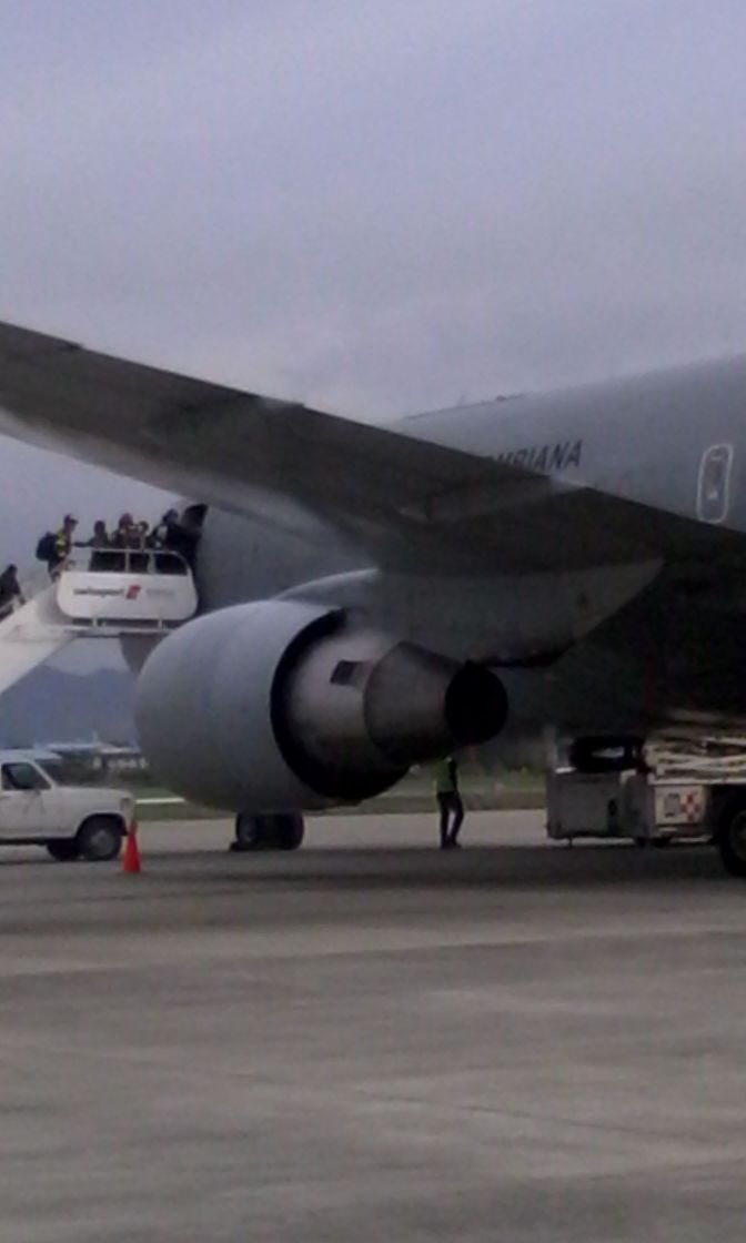Despega de Manta, Ecuador avión de @FuerzaAereaCol que trae a 154 connacionales repatriados #ColombianosEnEcuadorpic.twitter.com/9PttN4zW2R