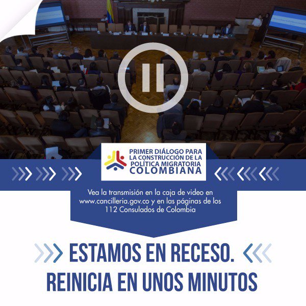 Estamos en receso. Primer diálogo para la construcción de la política migratoria colombiana reinicia en minutospic.twitter.com/BCoKBtuzKR
