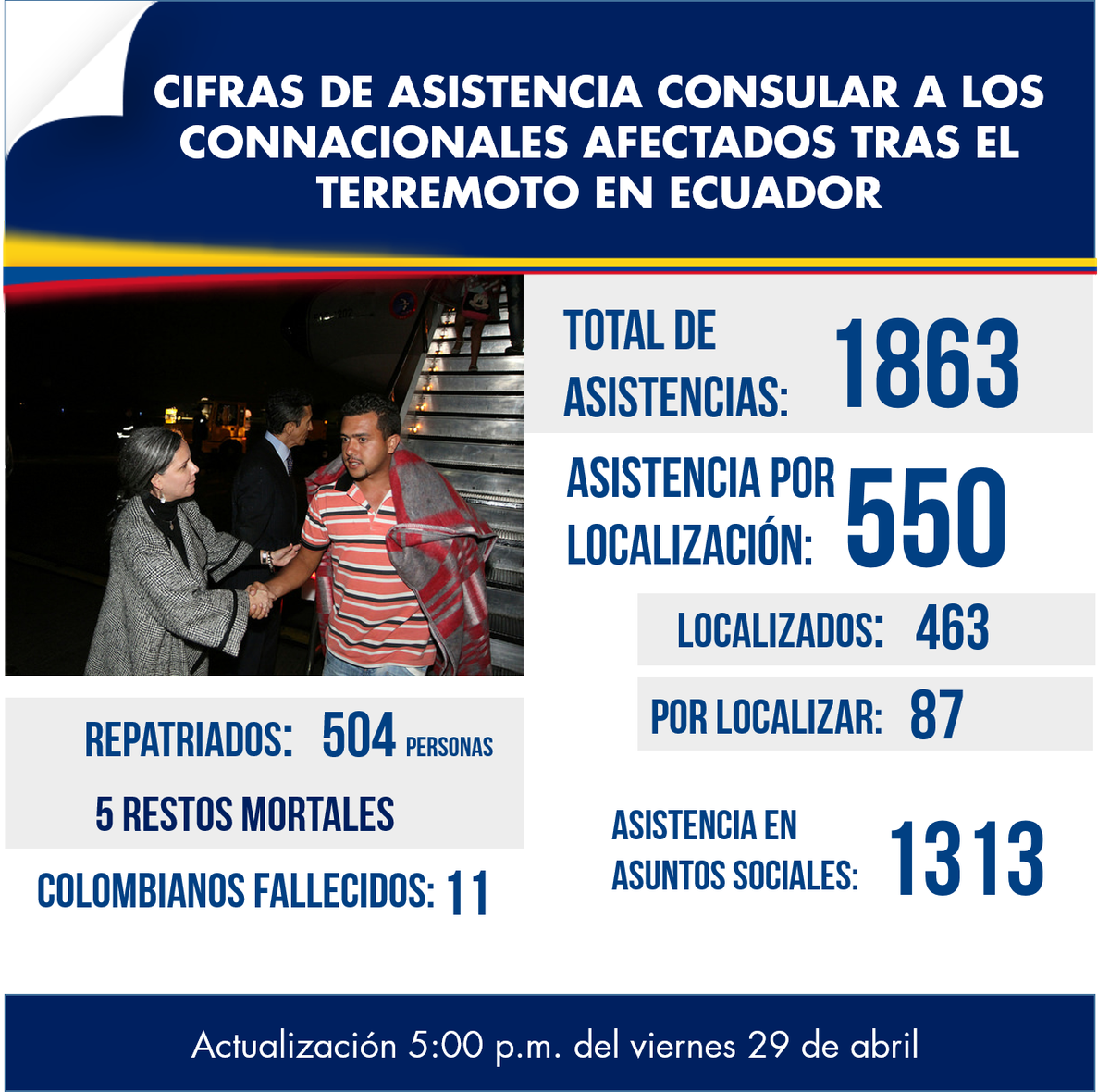 Actualización viernes 29 de abril 5:00 pm #ColombianosEnEcuadorpic.twitter.com/0mZsQhTs4W